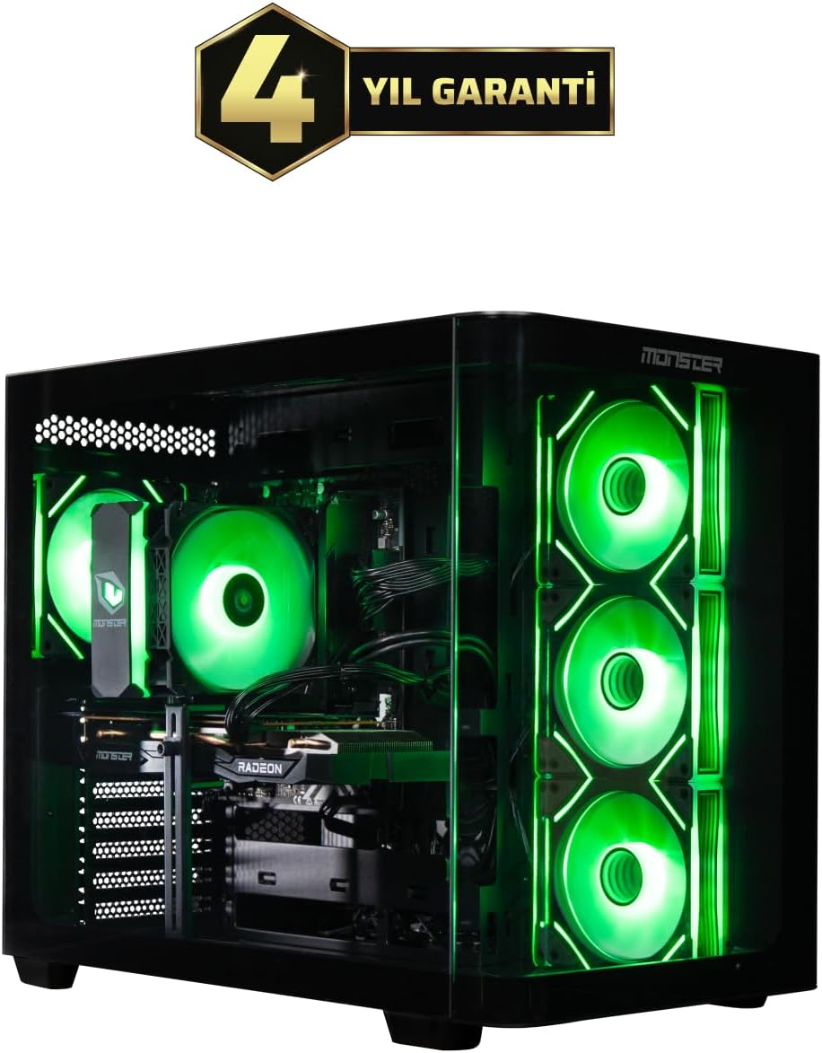 • AMD Ryzen 5 7500F işlemcisi ve Monster AMD Radeon RX 7600 8GB ekran kartı ile en zorlu grafiklerin üstesinden gel, oyunun başrolü ol. Abra A620A Gaming anakart, oyuna güçlü bir giriş yapmanızı sağlar. 4+1+1 güç fazlı VRM ile işlemciye kararlı güç aktarırken, Ultra M.2 SSD desteği sayesinde hızınıza hız katar. Geniş bağlantı desteğiyle kontrol sizde olur. Oyun tutkunları için akvaryum formunda tasarlanan özel kasa, şıklığı ve sağlamlığı bir araya getiriyor. Güçlü duruşunu, çelik gövde ve temperli cam yapısıyla gösteriyor. Monster’ın gelişmiş soğutma sistemi, zorlu oyun maratonlarında bile verimli soğutma sağlar. Bilgisayarınız daima serin ve kararlı çalışır.