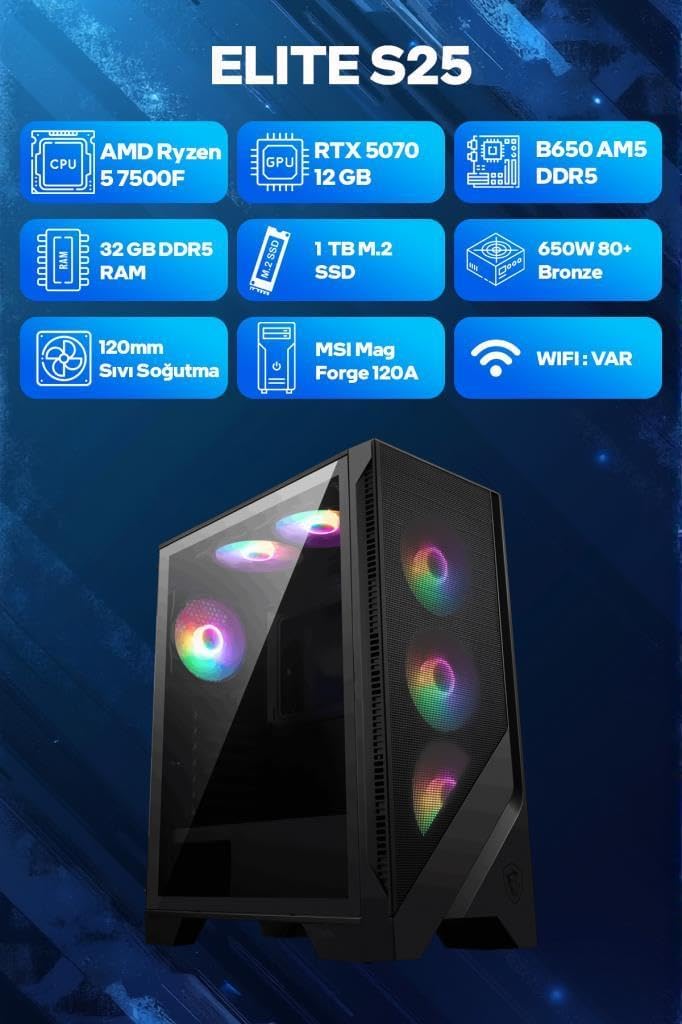 Game Garaj Elite S25 AMD Ryzen 5 7500F 32GB RAM 1TB SSD RTX5070 120mm Sıvı Soğutma FreeDOS Oyuncu OEM Paket (#UG9XEGNT)