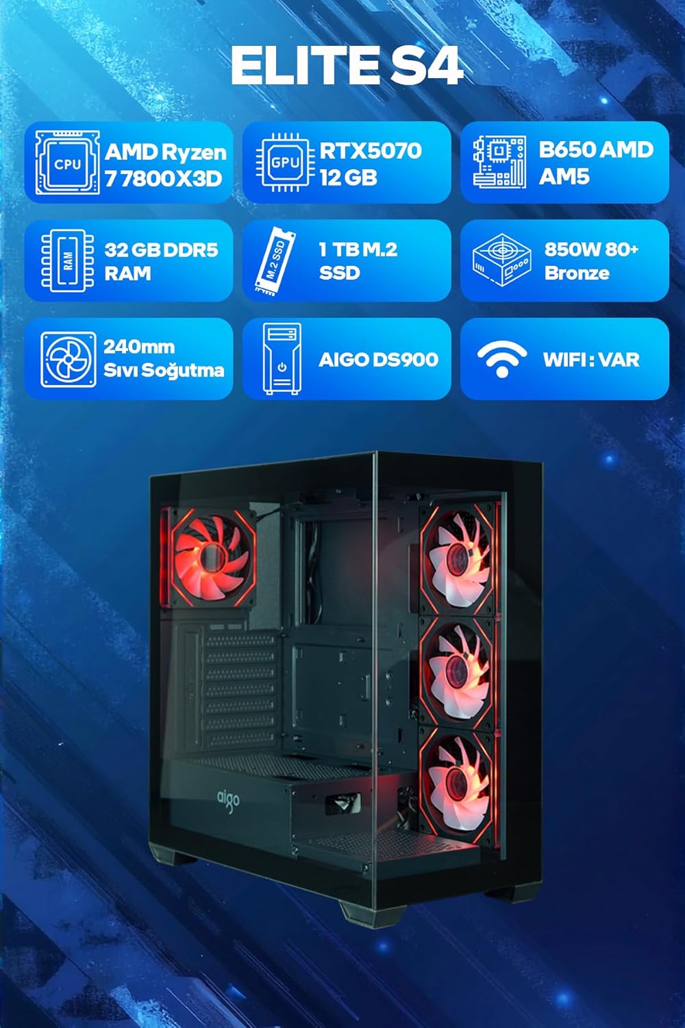 Game Garaj Elite S4 AMD Ryzen 7 7800X3D 32GB RAM 1TB SSD RTX5070 240mm Sıvı Soğutma FreeDOS Oyuncu OEM Paket (#H33VZKJL)