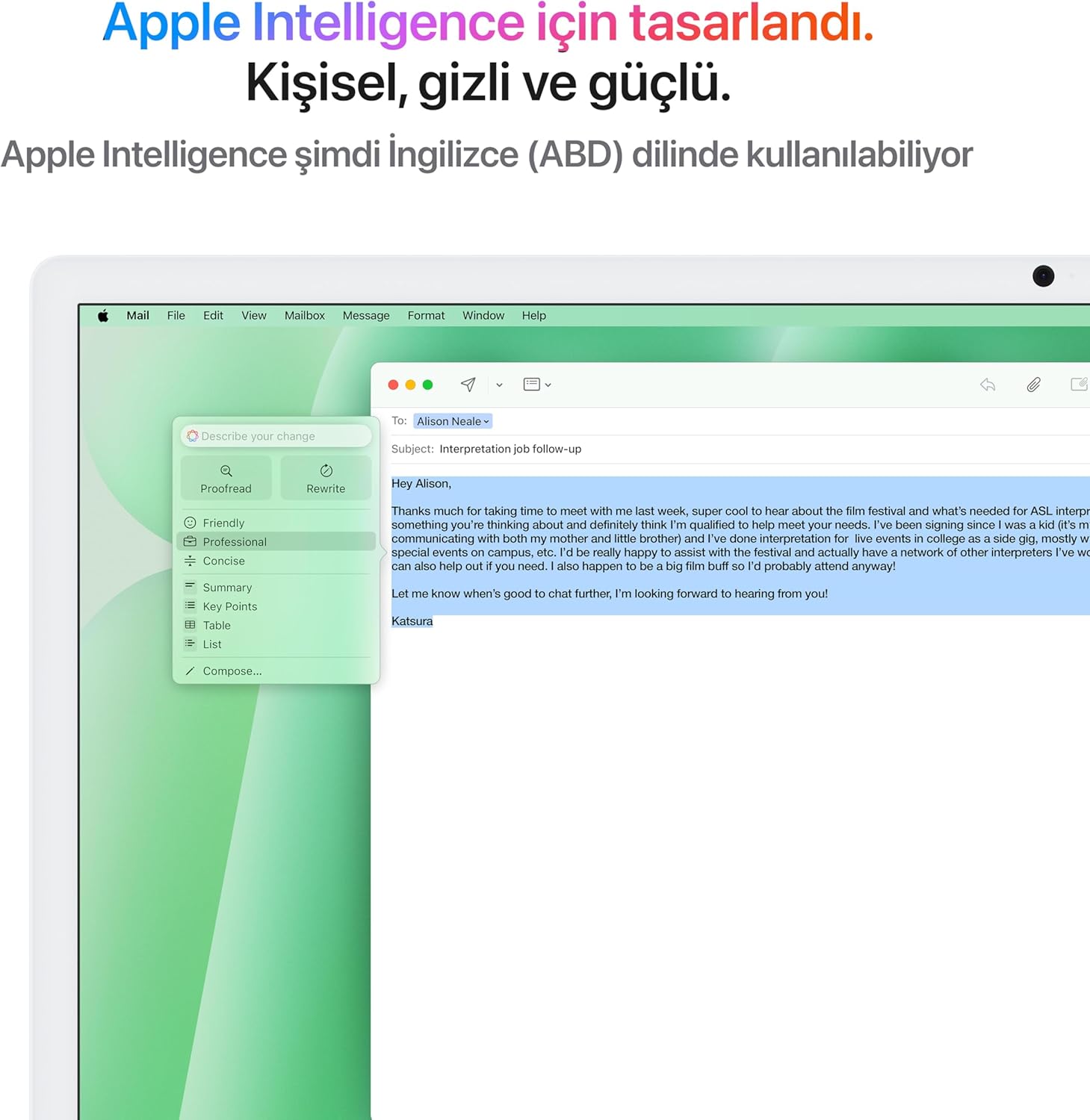 • İNANILLLLLLLMAZ — iMac, tam anlamıyla hayallerinizdeki hepsi-bir-arada bilgisayar. M4 çipin olağanüstü gücüyle donatıldı. Göz alıcı 24 inç Retina ekranıyla size tam da ihtiyacınız olan çalışma alanını sağlarken rengarenk ikonik tasarımıyla bulunduğu her ortama hayat veriyor. HER YERDE UYUM İÇİNDE - Olağanüstü ince bir tasarıma ve büyüleyici yedi renk seçeneğine sahip bu muhteşem hepsi-bir-arada masaüstü bilgisayar, her ortama şık bir hava katıyor. SÜPER GÜÇLÜ M4 ÇİP - Apple M4 çiple şimdi daha fazla şeyi daha hızlı yapabiliyorsunuz. Fotoğraf düzenleyin, sunum hazırlayın, oyun oynayın, kısacası ister eğlenin ister iş yapın, yeni iMac ile her şey jet hızında. GÖZ ALICI BİR EKRAN -Sektör lideri 24 inç 4.5K Retina ekran, 500 nit parlaklık ve bir milyar renk desteği sunuyor.* GELİŞMİŞ SES SİSTEMİ VE KAMERA - 12MP Center Stage kamera, stüdyo kalitesinde üç adet mikrofon ve Uzamsal Ses özellikli altı adet hoparlör sayesinde görüntünüz de sesiniz de harika. APPLE ÇİPLE IŞIK HIZINDA UYGULAMALAR - Microsoft 365’ten Adobe Creative Cloud’a kadar favori uygulamalarınızın tümü macOS’te ışık hızında çalışıyor.* IPHONE’U SEVİYORSANIZ MAC’İ DE SEVECEKSİNİZ - Mac, diğer Apple aygıtlarınızla kusursuz bir uyum içinde çalışıyor. iPhone Yansıtma özelliği sayesinde iPhone’unuzdaki içerikleri Mac’inizden görebiliyor ve kontrol edebiliyorsunuz. iPhone’unuzdan kopyaladığınız bir şeyi Mac’inize yapıştırın. Mesajlar üzerinden kısa mesaj gönderin veya Mac’inizden FaceTime aramalarını yanıtlayın.* TÜM AYGITLARLA BAĞLANTI - iMac, 4 adede kadar Thunderbolt bağlantı noktasıyla sunuluyor. Böylece hem aksesuar seçenekleriniz artıyor hem de ışık hızında veri aktarımı yapabiliyorsunuz. Üstelik işleriniz için daha geniş bir tuvale ihtiyaç duyduğunuzda iMac’inize iki adede kadar harici 6K ekran da bağlayabiliyorsunuz. Ayrıca Wi-Fi 6E ve Bluetooth 5.3 ile sorunsuz kablosuz bağlantının keyfini çıkarıyorsunuz.* YASAL AÇIKLAMALAR — Bunlar ana ürün özelliklerinin bir özetidir.