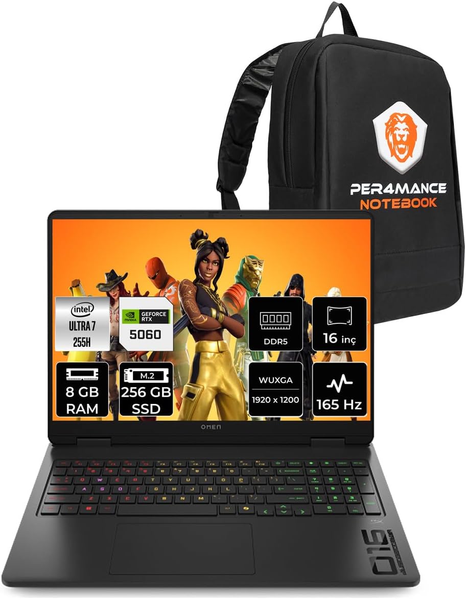 HP Omen | NVIDIA® GeForce RTX™ 5070 8 GB | Intel® Core Ultra 7 255H | 16 inç 60-240 Hz 3 ms IPS Ekran | 24 GB DDR5 RAM | 1 TB PCIe® Gen4 NVMe™ M.2 SSD | FreeDos | Gaming Laptop | CJ8T8EA (#TYYULBUS)